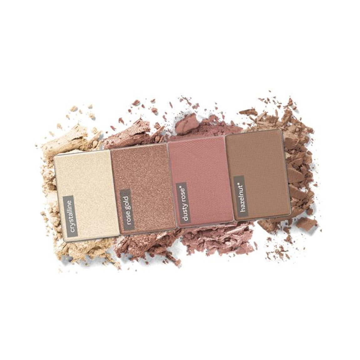 Incluye 4 Sombras para Ojos Mary Kay Chromafusion® en los tonos: Crystalline, Rose Gold, Dusty Rose y Hazelnut.