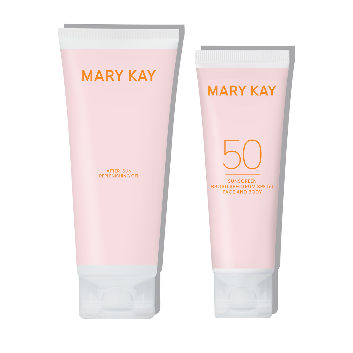 ¡Protege y refresca tu piel! El Protector Solar FPS 50+ Mary Kay® ayuda a cuidar tu piel contra la exposición solar, mientras que el Gel Corporal Restaurador para Después de Asolearse Mary Kay® la refresca y humecta después. Juntos, son el combo ideal para disfrutar del sol sin preocupaciones.